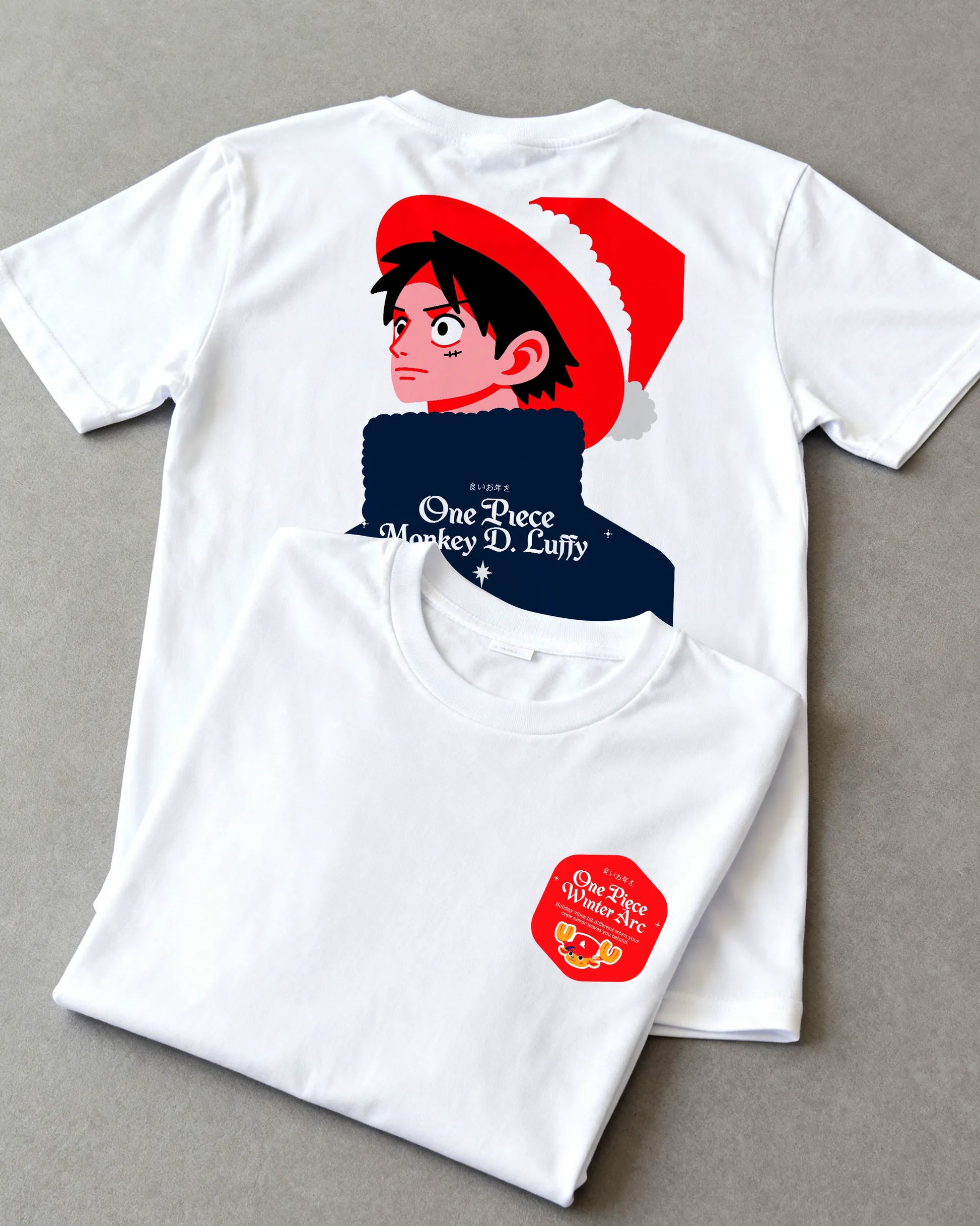 This Anime tee brings the One Piece family into cozy season with puffer jackets and holiday mood turned all the way up.